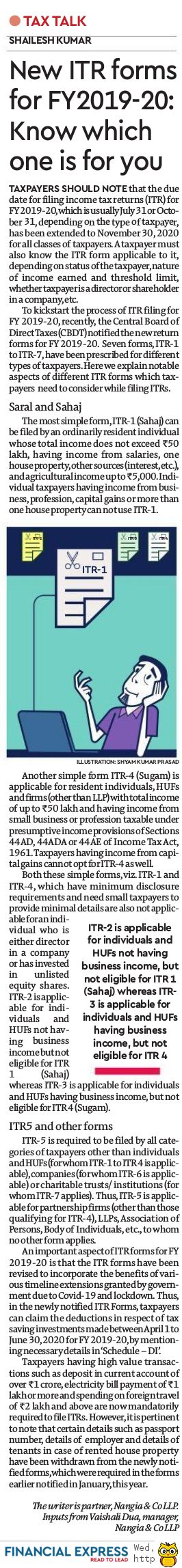 Non Life Insurance - New ITR Forms for FY 2019-20: Know Which One is for You